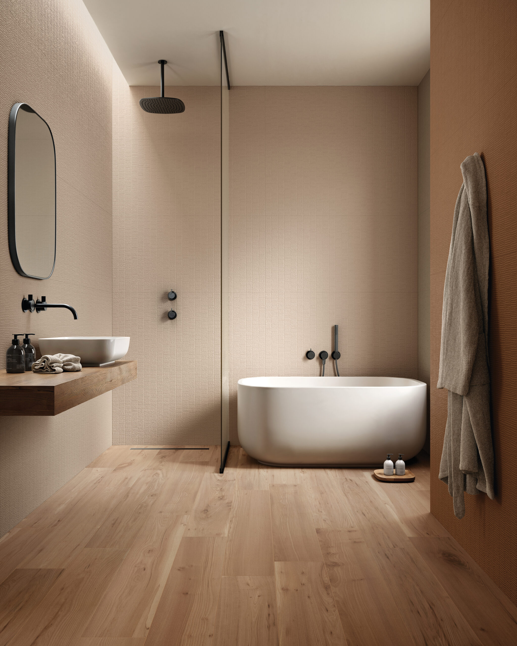 Obklad béžovo hnedý matný s 3D vzorom 60x120cm HOMEY Ramie Ecru